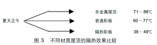 歐美稱之為“冷屋頂”。以隔熱板做工業廠房的屋頂在夏季可以有效降低室內溫度6~13度,降低空調的使用成本,節約電力。彩鋼板隔熱的功能實現主要是利用了彩涂面漆 涂層高反射率的特殊陶瓷填料,由填料完成對太陽光中UV及波長700~2500nm的近紅外NIR的反射,阻止NIR向基材的穿透。
