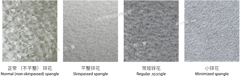 產品按表面狀態可分為正常(不平整)普通鋅花、平整鋅花、常規鋅花、小鋅花表面產品。因其具有耐蝕性好、加工成型性能優良、生產成本低、外觀美麗等優點,而廣泛用于建筑、汽車、家電等行業。特別是小鋅花、 無鋅花鍍層產品, 其表面晶粒細小致密、 光滑具有更好的涂裝性和耐蝕性尤其適用于家電、彩涂等行業。