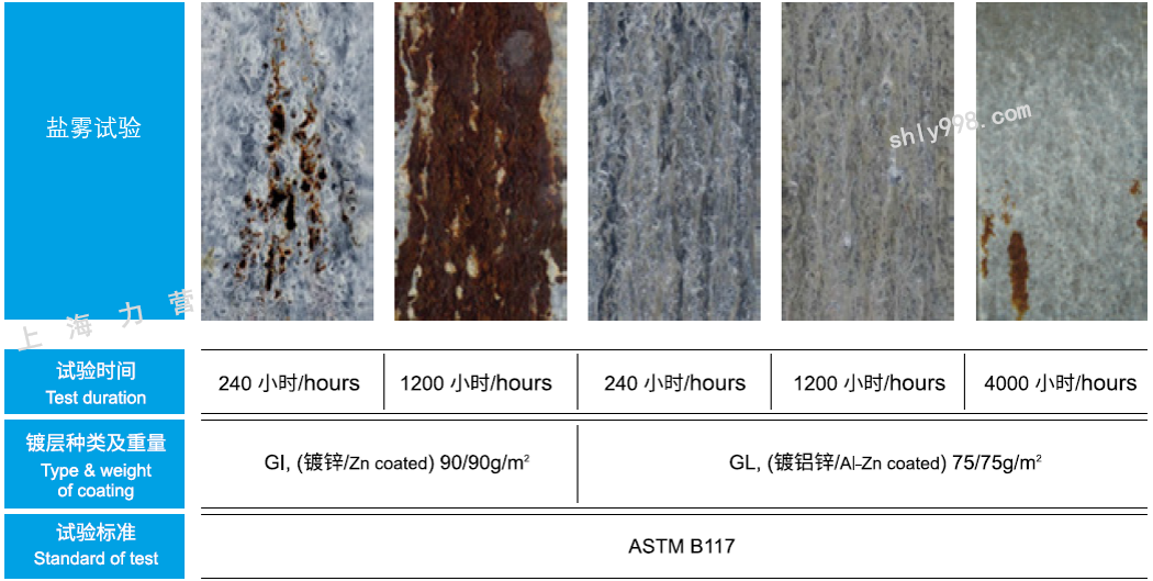 先來看下美國材料與實驗協會B117-09鹽霧試驗標準中文版的鹽霧試驗結果: