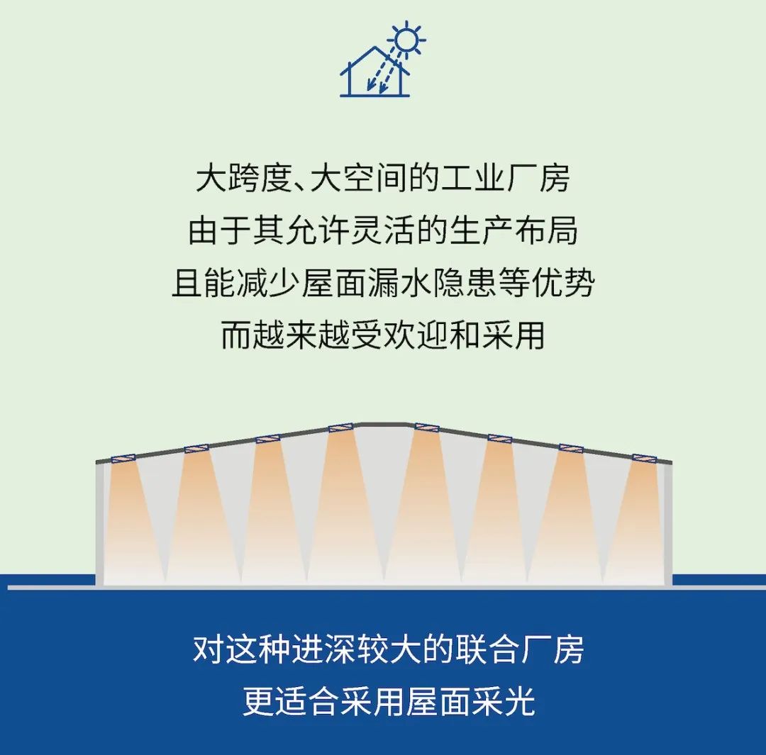 針對工業廠房這種面積大、進深大的特點,側窗采光一般很難滿足絕大多數區域的自然采光,所以可以考慮采用頂部采光以達到室內良好的采光效果。對于進深大,面加大的工業廠房, 增設天窗可以有效改善車間內的自然采光效果,即使在冬季陰天較不利的室外光氣候下,天窗也可以對室內采光有一定的貢獻。同時,天窗具有較大的人工照明節能潛力!
