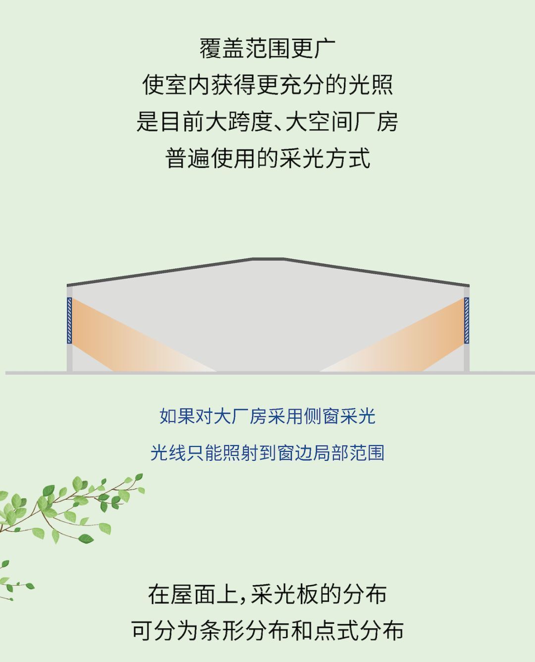 在我們的工業廠房中,如何更大利用自然采光,是我們的一個課題。賦予了廠房節能減排。更大限度的利用自然光節能減排,可以為企業節約生產成本、提高產品的利潤,同時減少向大氣中排放的廢氣,有利于環境的美化。