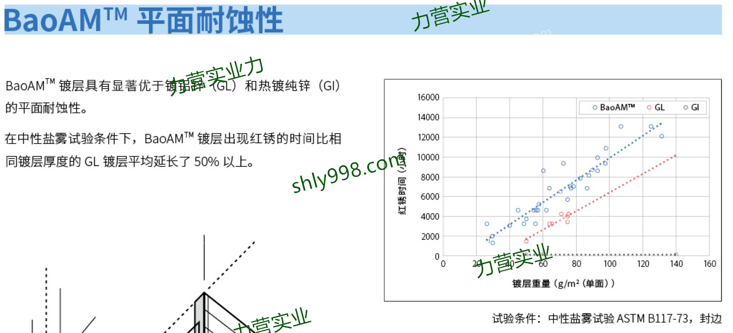 BaoAMTM是寶鋼鋅鋁鎂(GalvAluMagTM)系列產品家族的一員,是在原有鍍鋁鋅(GL)鍍層中添加了鎂元素之后的升級產品,具有更優異的平面耐蝕性和顯著提高的切口耐蝕性等特點,廣泛適用于建筑及家電行業。