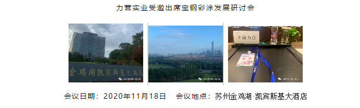 力營實業(yè)于2020年11月18日參加寶鋼股份在--蘇州金雞湖·凱賓斯基大酒店--召開的“信賴30年寶鋼彩涂品牌發(fā)展研討會”。