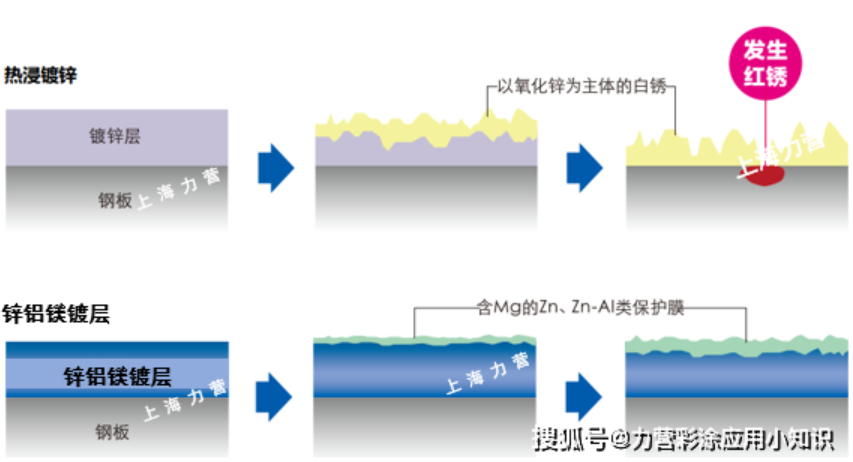 鋅鋁鎂鍍層鋼板在現有的熱鍍鋅鍍層中添加了一定量的Al、Mg或者在熱鍍鋁鋅鍍層中添加了一定量的Mg元素的鍍層鋼板,具有高耐蝕性、高切邊保護性能的特點。